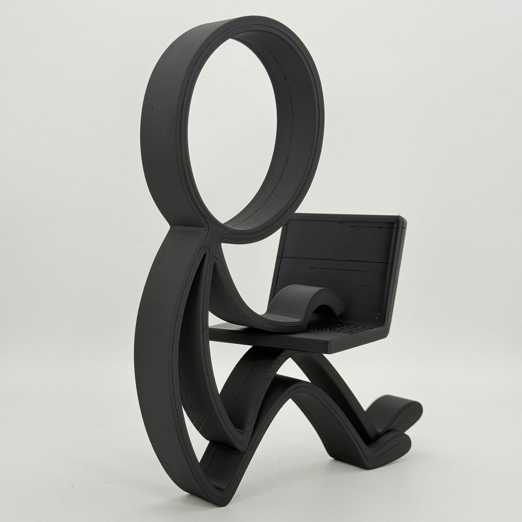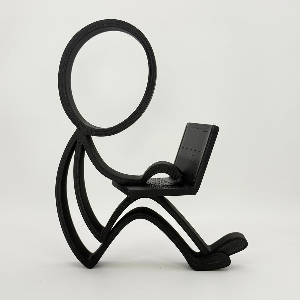 Of je nu thuiswerkt, studeert, programmeert of graag online bent, deze Stickyman symboliseert concentratie, innovatie en moderne creativiteit. Zijn ontspannen houding met de laptop op schoot straalt rust en focus uit – precies wat elke digitale denker of maker nodig heeft.