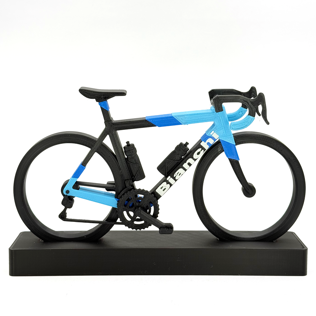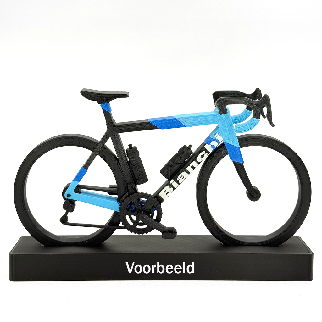 Voor de echte wielerliefhebber is dit een stijlvolle ode aan pure snelheid en Italiaans design. Deze Bianchi racefiets decoratie is tot in detail vormgegeven en 3D-geprint in een strakke zwart-blauwe kleurstelling met een sportieve uitstraling.