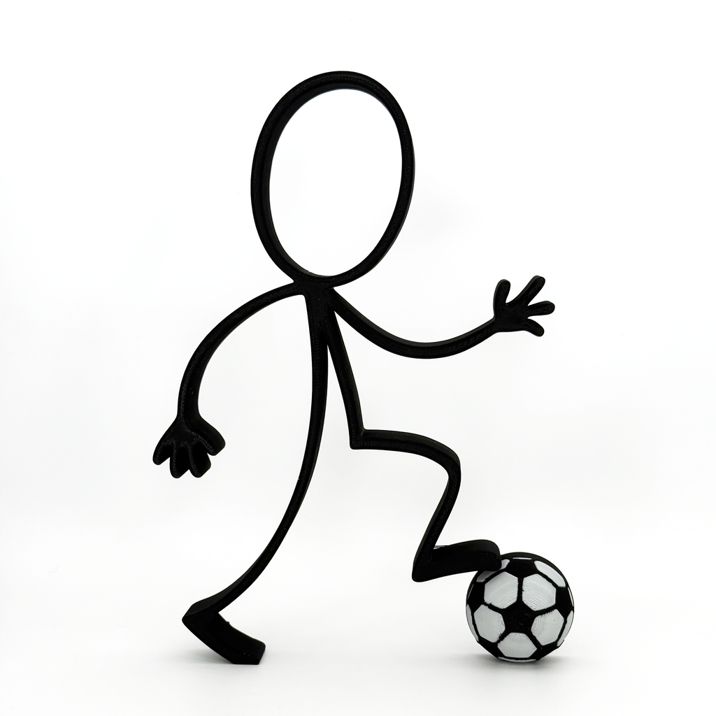 De Stickyman Voetballer is geprint met duurzaam PLA-materiaal en combineert eenvoud met kracht. De zwarte afwerking geeft een tijdloze en moderne uitstraling, terwijl de zwart-witte bal zorgt voor een speels accent.